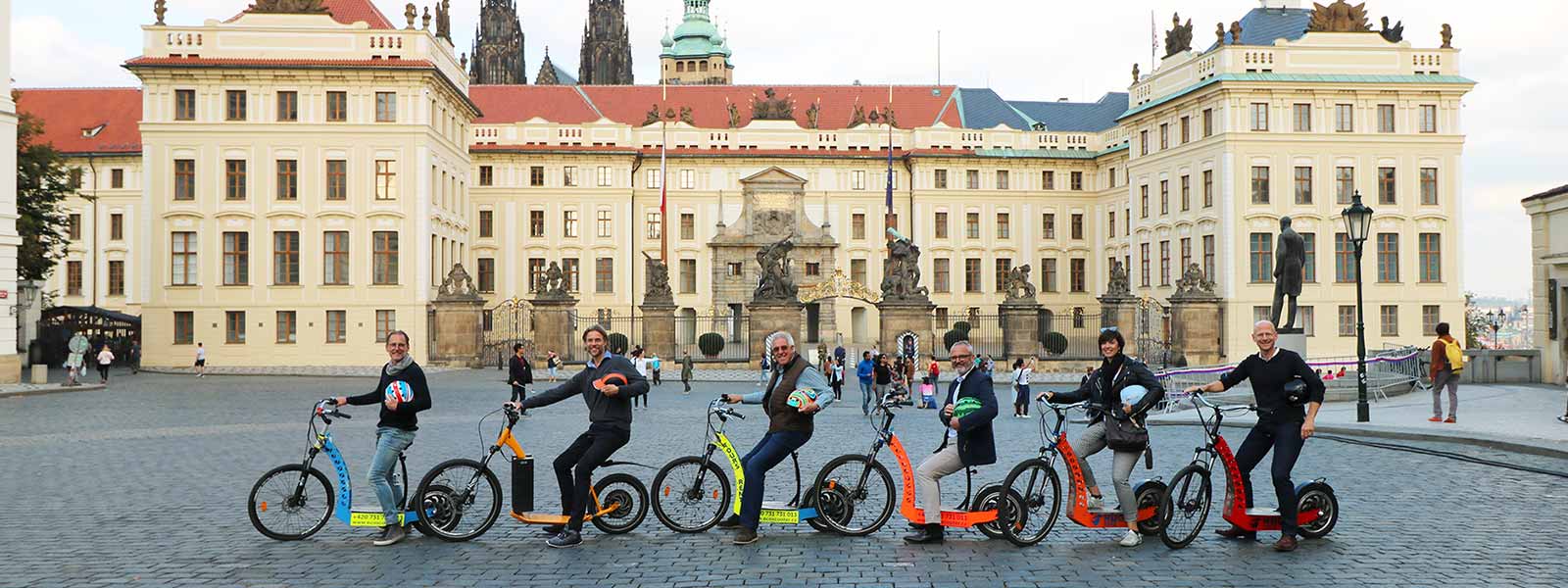 Conheça a cidade com as nossas trotinetes electricas e o seu guia privado dar-lhe-à a conhecer os melhores pontos de vista e miradoros para as famosas pontes de Praga desde o Parque Letna, e ainda, a Cidade Pequena, o Castelo de Praga (Jardins do Sul), o mosteiro Strahov, a colina de Petrin, o Parque Kampa e o rio Vltava, a Casa Dançante, a ponte Carles e muito mais. Este tour é uma versão extendida do nosso classico de Segway, realizado antes da sua restrição na Cidade Velha. Adicionámos alguns locais extra para lhe porporcionar a melhor experiência: descobrirá a cidade e vai seguramente enamorar-se por todo o ambiente de Praga enquanto saca os melhores retratos dos momentos inesquecíveis.
